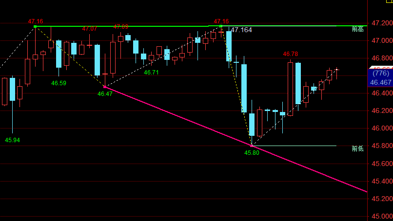 银价日线呈前进三兵,日线RSI仍位于超买区,4小时呈空中加油,有望实现进一步上破,46.60上方可维持低多思路,后市预计将挑战48.20。白银预计高位会强势震荡,继续低多为主不追涨。日内重点支撑位于46.4-46区域,多空分水岭,之上保持多头,跌落走调整。白银下方关注46.65-46.30支撑,上方关注47.30-47.65阻力。日内操作上,依托46.30支撑继续看多。