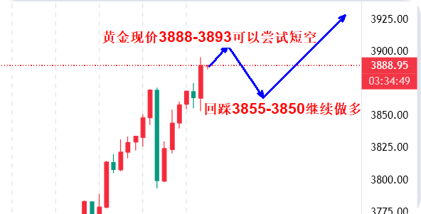 黄金建议:现价3888-3893可布局短空 止损3897 目标3870
