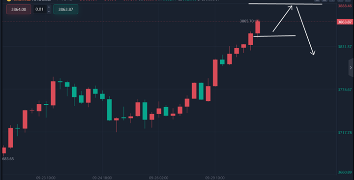 当前盘面来看,黄金继续保持多头趋势看涨,并且不猜顶,交易原则以回落做多为主。本周截至目前为止,周一,周二的行情都复制了上周的走势,周一单边上周刷新高点,周二继续上涨后出现回落的大跌空间,但在趋势作用之下,空头不死,多头不止,黄金再次走出大涨空间,所以收盘在3860高点,那么,今天的思路也较为明确,继续保持多头趋势,等待回落做多即可。