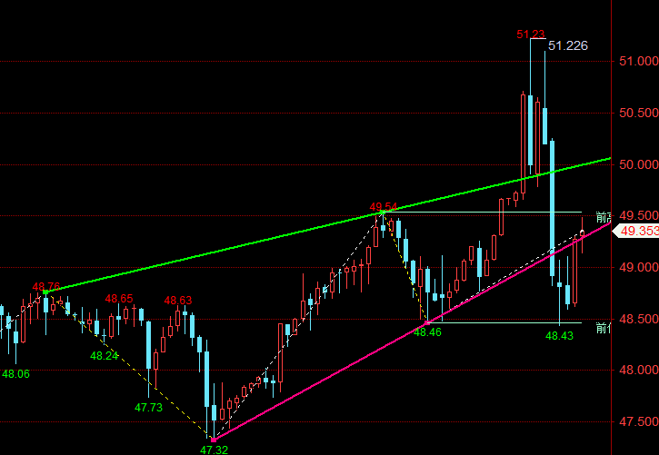白银价格在昨日交易中,白银上涨一度突破历史高点49.78,美盘时段短期走势显示,白银价格稳步突破49.78并站上51.00关口,进一步上探至高点51.22位置;随后开始瀑布跌破49.00并承压此位置。白银短线操作上建议49.5-49.8一线空单进场,止损50.0,目标看48.8一线;建议在48.2-48.0一线多单进场,止损47.7,目标看49.00一线。