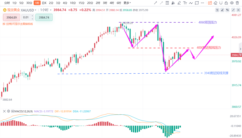 上个交易日黄金走出了暴跌空间,但是张德盛还是要强调的是,黄金的多头趋势不变,未来市场还是要看主力上涨。在趋势中,一切下跌都只算是调整空间。今天黄金就不会像周一,周二,周三那样强势,所以,今天黄金走势有两种可能,要么是多头趋势的高位震荡,要么是单边多头上涨趋势。那么,今天交易还是尽量做低多看涨。从技术面来看,日线大阴回落,跌破5日均线,但没有破位10日均线,所以,不存在说强弱转换,下方跌破3900才可能考虑多空趋势变化。H4周期短期布林收口,可能会在高位震荡一段时间,实际上下关注的区间在3920/4060,所以,即使今天再低一波也算是正常的表现,但午夜在低位3945快速反弹,那么,今天再走低的可能性不大,大概率会在3945之上继续看涨,还是保持看涨不猜顶原则,如果继续走出趋势力度,今天还是可以看涨到前高4060高点。小周期来看,小周期下方支撑在3970附近,今天亚欧盘可在此点位做多看涨,如果是震荡大概率看到4000之上,如果是单边即可逐步看4030,4060。日内操作保持低多看涨思路不变。目前手上有低位的空单和高位多单不知道如何处理,张德盛可解