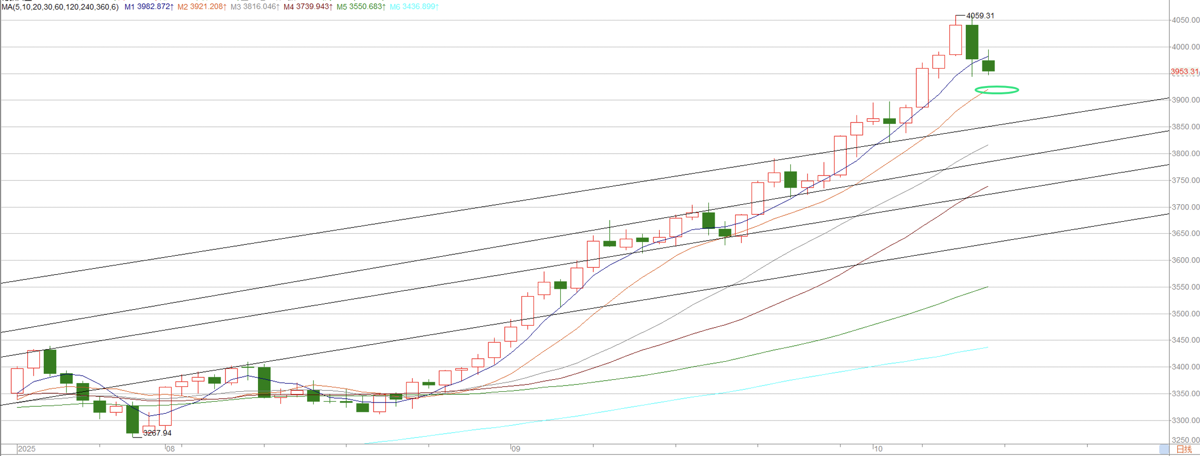 3930美元附近不仅是这波黄金上涨的起涨趋势线,还恰好与日线图的MA10位置相吻合。若金价进一步下行,触及3930美元的概率非常大。