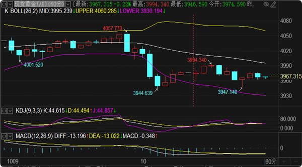 盘面上来看,目前的温和震荡区间看3995-3945,刚好是在8小时周期孕线参考范围内盘整,晚间走势向哪边突破都可以看延续。不用把行情想的很难做,心里有预期的多空方向进场点位做参考建设,临盘触及只需要略微调整即可。今日阻力方面关注早盘高点3994.5位置,1小时趋势线压力点位于3995,而1小时平行通道上轨承压4008一线,向上的偏差关注4015和4025预计都够了。