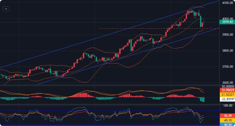 2. 稳健待反弹4015-4020一线空,损8点,目标看3985-3995。(策略具有时效性,更多实施布局建议在钉钉实盘学员内部公布)