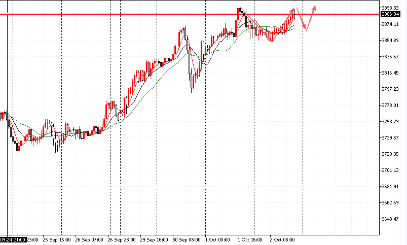 目前在日线级别走势上K线继续沿着短周期均线维持较好的震荡上行走势,上个交易日走出小幅的冲高回落但是后续力度有点不太够,在日线走势上的见顶可能还需要时间。目前市场都在等待明天的非农数据,行情可能相对不会走的太大。小时级别走势上在连续的窄幅震荡之后技术形态开始逐步调整,短周期均线开始逐步勾头向上发散K线开始慢慢站上短周期均线,倾向于在短期走势上可能会有一些反弹的空间。目前在4小时级别走势上短周期均线基本维持个粘合放平的状态,价格区间压缩的非常小,关注下短线的调整。黄金表现强势,小时线周期连阳上升,目前继续靠近高点3895一线,晚间来说跟随趋势看涨,注意再破高就去3900之上,顺势原则依然不猜顶。