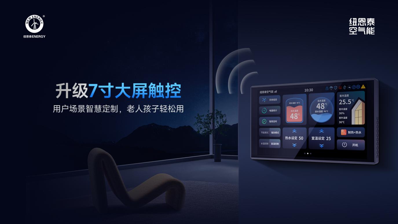别墅房间多,手动调温太麻烦,最好选带大屏触控、支持远程控制的机型——老人孩子一看就会操作,出门忘关设备也能手机远程降温节能,下班路上还能提前升温暖房,回家就能享受到温暖,生活便利性直接拉满。
