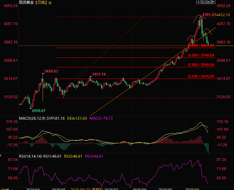 此次黄金下跌除贸易乐观情绪的主导外,部分技术性抛盘也起到推波助澜的作用。当价格跌破关键心理关口后,前期多单止损离场引发短期抛售,加剧了下行节奏。