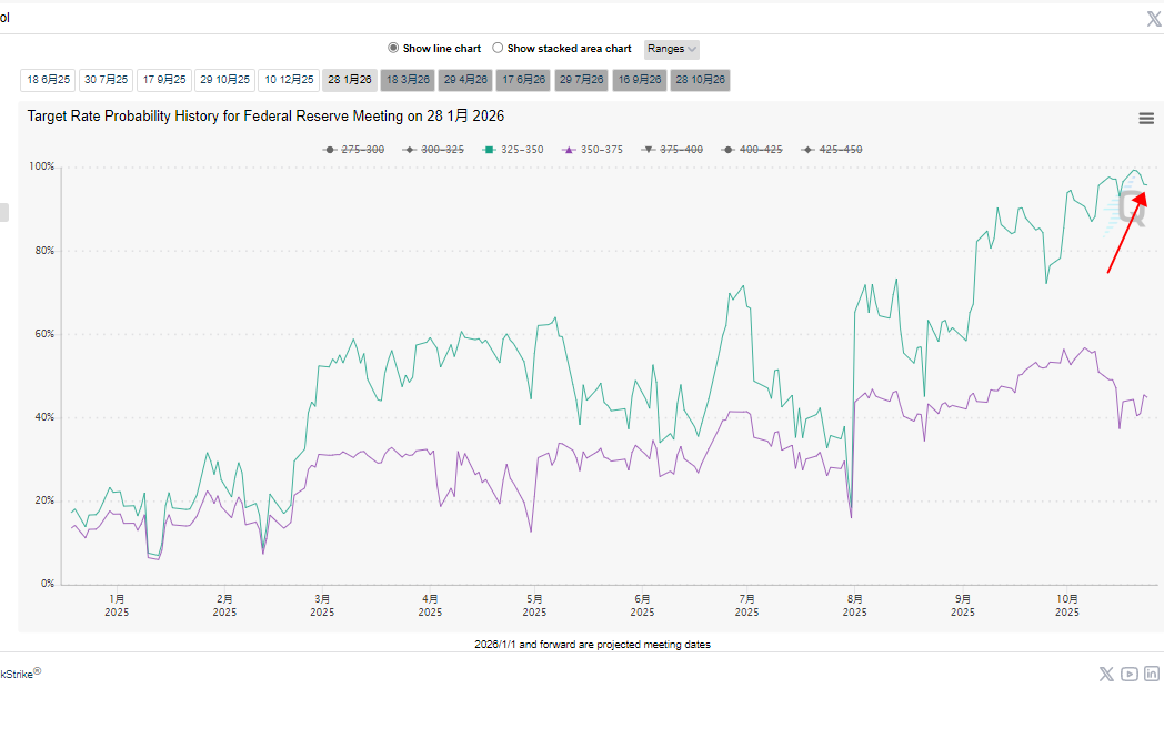 从预期来看,芝商所(CMEGroup)美联储观察工具显示,交易员已完全消化美联储在周三会议落幕时降息25个基点的可能性,且对12月再度降息的预期也在逐步升温。这一预期的形成,与上周五公布的美国通胀数据密切相关——9月整体消费者物价指数(CPI)与核心物价指数(剔除食品和能源)同比均上涨低于市场预期的3.1%,印证了通胀压力温和、为降息提供空间的判断。