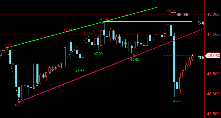 综合来看,白银短线操作思路上王召金建议反弹做空为主,回调做多为辅,上方短期重点关注47.3-47.5一线阻力,下方短期重点关注46.6-46.4一线支撑。