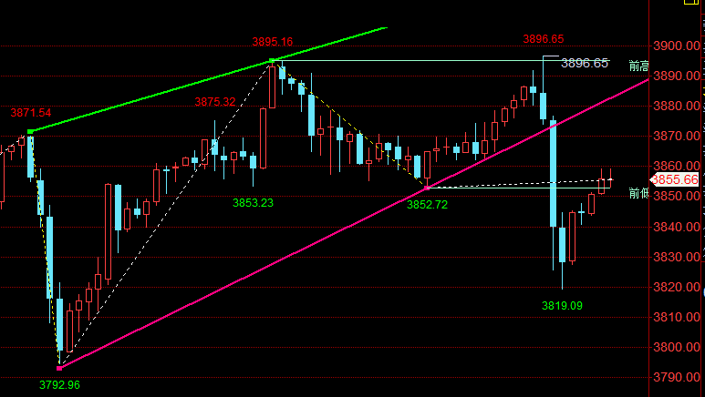 若被多头强势上破,则金价有望重返3900关口,之后再得到短线延伸上行的动能,当然,持续走高的可能性不大,毕竟在反复走势中,3895和3896两处形成的双顶结构已经确认,再加之技术指标依旧是显示超买的,这是基本面与技术预期相背离的体现,这就说明高点正在逐步下移,若金价属于阶梯式下行,那么即使再出现反复,高点仍可预期在3900关口之下,届时金价承压后必定会有更强力度,更大空间的下跌。