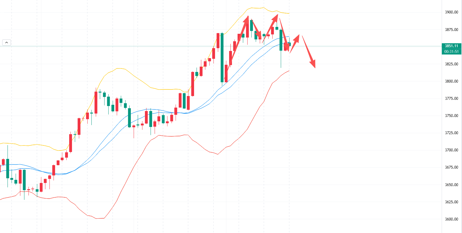 若非农公布值<5万(利多黄金):不盲目追多,关注3870-3880压力位,若无法突破可反手做空,止损3890上方。