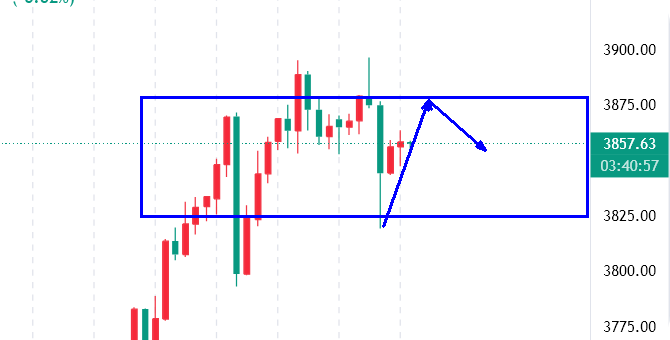黄金建议:现价3857轻仓空 反弹3868-3873补仓空 止损3880 目标3845