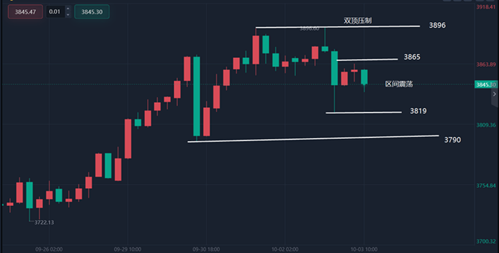周五(10月3日)亚市早盘现货黄金小幅下跌,目前交投于3843.72美元/盎司附近。周四(10月2日)在创下历史新高的狂欢之后,黄金市场再度上演“高台跳水”的惊险一幕。周四(10月2日)现货黄金在触及每盎司3896.60美元的纪录峰值后急转直下,单日震荡幅度接近2%,最终小幅收跌。这场突如其来的波动,如同一盆冷水,浇醒了沉浸在牛市中的投资者。短线而言,投资者需要继续关注美国政府停摆的相关消息、美联储官员讲话和地缘局势相关消息。