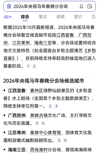 宜春、贺州、常州、三亚入选2026央视马年春晚分会场呼声高