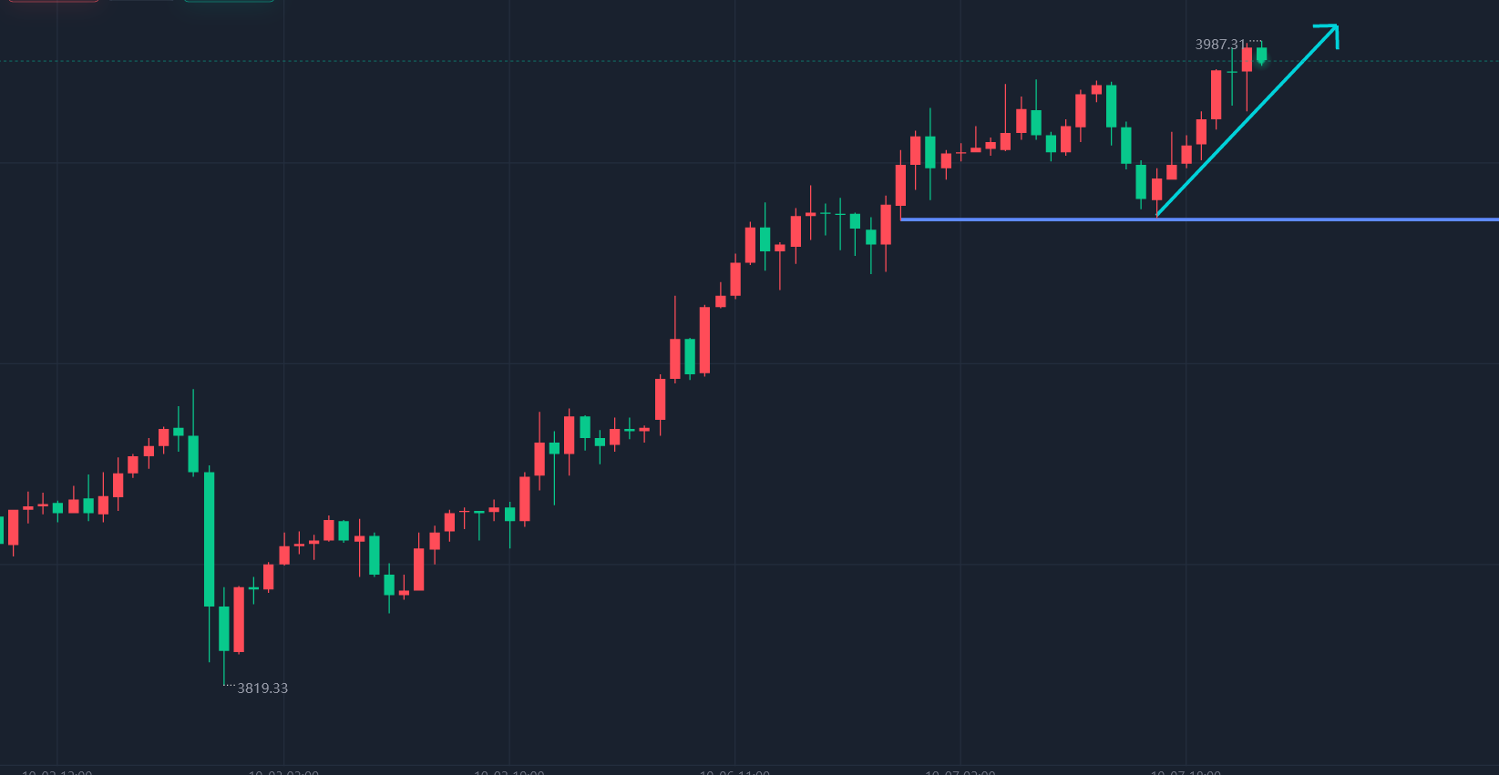 黄金3940上多,止损3930,目标4000-4010