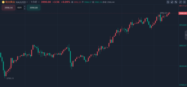 黄金日线级别,周一强势收报接近饱满大阳K,有效突破站稳前几日箱体整理阻力位3897一线,并站上3900关口。小时线级别,黄金周一晚间强势收盘于相对高位,周二持续发力,再创历史新高并剑指4000关口位置。目前在上涨遇阻后,暂时保持高位震荡。下方支撑,关注周二冲高回落低点3940,其次关注3930-3925;上方压力关注4000整数关口,若向上突破,则顺势上看。5日均线与MACD指标金叉向上,KDJ与RSI指标超买区域金叉轻微下拐,短期技术面显示多方继续占优,黄金在连续冲高后,走势处于超买状态,市场看涨情绪强烈,但需要注意短线调整需求。操作上金财建议回调坚持继续看涨,而最终4000是迟早会突破上去。【文末+本人,每日实时分享现价单及策略】