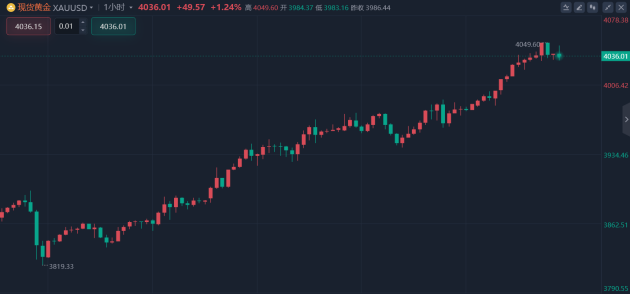在美国政府停摆进入第八天且尚无解决迹象的背景下,周三黄金开盘上涨,延续隔夜的上升趋势,突破4000美元整数关口,最高涨至4049美元,短期表现十分强势,目前暂时交投于4035美元附近。美国政府停摆为金融市场增添了不确定性,导致对美联储决策至关重要的美国经济数据延迟发布。不过,交易员仍预计今年美联储还将再降息两次。与此同时,法国的政治动荡以及持续的地缘政治风险,继续推升市场对避险资产的需求。高盛集团将2026年12月的金价预期从此前的每盎司4300美元上调至4900美元,其理由包括黄金交易所交易基金的资金流入以及各国央行的购金行为。未来几个月,黄金与美元之间的负相关关系或有助于提振金价。尽管近日黄金期货与美元同步上涨,但过去一年间,黄金与美元始终保持着显著的负相关关系。预计到2026年第一季度末美元将贬值4.4%,这一走势可能会进一步推动金价上涨。到2026年第二季度,金价或将升至每盎司4500美元,目前很难找到任何可能导致黄金市场走弱的利空因素。