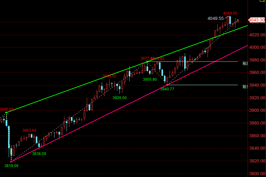 今日黄金市场延续拉升过程,早盘开盘在3984的位置后行情先拉升给出了3999的位置后行情冲高回落,目前最低给到了3984的位置后行情快速拉升,现最高触及到了4038的历史新高后行情整理,综合来看,黄金短线操作思路上以回调做多为主,反弹高空为辅,上方短期重点关注4060-4070一线阻力,下方短期重点关注4020-4010一线支撑。