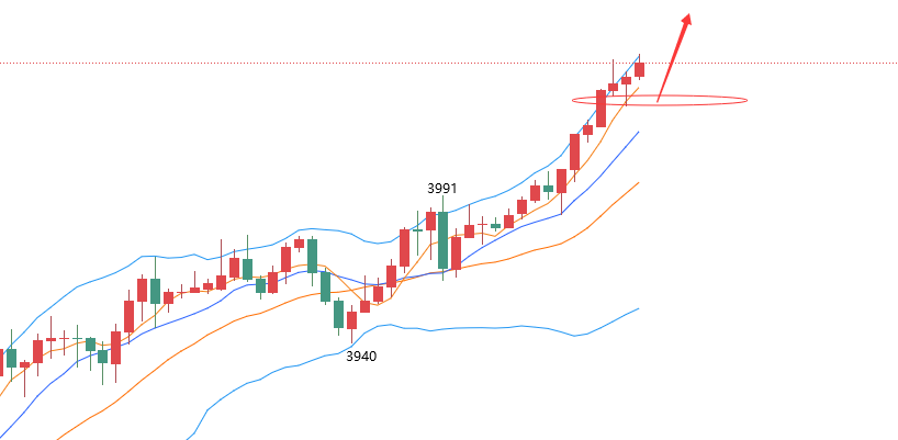 目前最高触及到了4049.6一线附近位置,而近期内的高点不断刷新的同时,也让我们习以为常,单纯从数字上面也刷新了我们的认知,而这种无止尽上涨也让市场变得前所未有的恐惧,昨日美盘最低回撤于3961一线后开启反弹上行,而所有的阴线也将可以作为短线内多头的修正,并非是反转,从这一点而已,无论何时布局空单,可能都是一个错误的决定,只有等待冲击过后的下跌,或许能有稍许的机会进场做多,而目前虽然各个指标都处于强势中,短线内也只能等待回撤之后继续做多。
