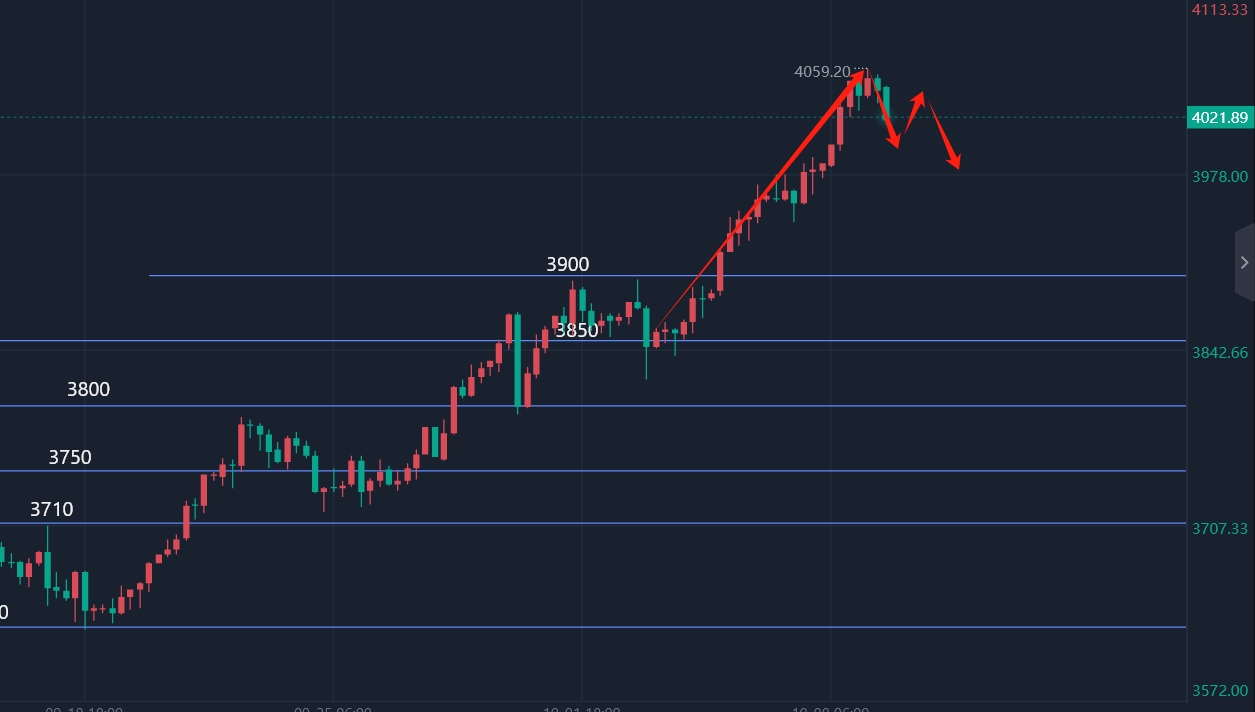 仅在4059(当前新高)附近或4060-4065区间(下一测算压力位)轻仓试空,止损设对应压力位上方5-8个点,目标仅看10-15个点回调,不可贪心持有,回调后及时止盈离场。