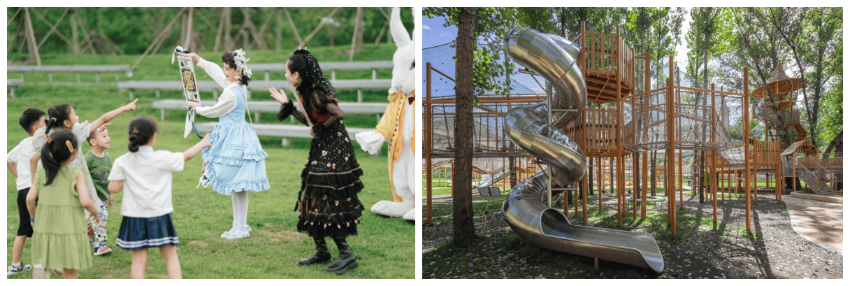 这个坐落于山水之间的社区,在空间规划上展现出对全龄需求的深刻理解。专为儿童设计的动物互动区,让孩子们能与温顺的羊驼、卡皮巴拉建立亲密联系;穿梭于田园风光中的观光小火车,则为全家带来别样的出行体验。"魔法部落"无动力乐园通过科学的安全设计,让3-10岁的儿童在自主探索中获得成长乐趣;而"探索天地"的高空滑索和攀岩设施,则为青少年和成年人提供了释放激情、挑战自我的平台。新近投入使用的文娱中心,更以其多元化的休闲功能,满足了不同年龄段居民的娱乐需求。
