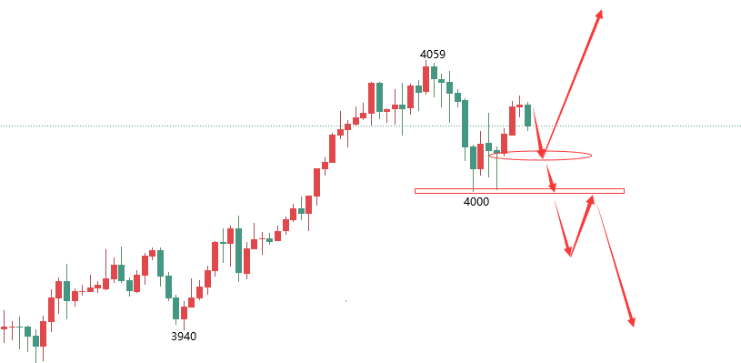 现在的黄金不用讨论方向和趋势,只需要讨论每日在哪个点位跟上趋势,甚至在看涨的时候,你都不知道高点在哪里。经过周三的上涨,黄金最高在4059附近,在亚欧盘连续上涨中,出现高点,美盘虽然也有上涨的空间,但主力在午夜回落了一波,最低在4000附近,比较符合看涨不追涨,回落到关键点位做多的策略。昨天提示过,这波黄金看涨需要在4020或者4005附近支撑做多,如果美盘行情提前走出来,就给了我们在4000做多的机会。那么,今天的行情看法就稍微简单一些了,保持多头看涨交易不变,以4000为防做多,上方先看前高4060得失,如果不破4060就以短线获利了结,如果破位4060,上方可能会去4100甚至更高。另外,今天要特别注意一下,周三午夜大跌一波,周四是一周变盘的时间节点,周四美盘或者午夜也有可能会出现扫盘的下跌空间,而且力度可能会超过100美金,大家要注意这一点。【目前,对积存金/融通金、黄金/白银延期及原油投资感兴趣、资金严重缩水,收益不理想的朋友,文章底部加江沐洋QQ钉钉获取每日行情走势及实时指导,套了单的朋友,也可以与我交流。】