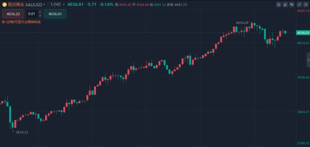 昨日黄金市场延续强势拉升趋势:早盘开盘在3984美元/盎司,开盘后行情蓄力最低触及3983美元/盎司,随后开启强势拉升,美盘时段,受基本面影响延续多头趋势,最高触及4059美元/盎司,最终收报4041.7美元/盎司。日线收取上影线较长的大阳线形态。本周以来涨幅已超4%。