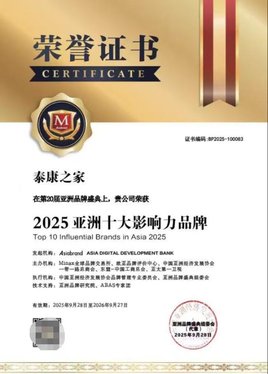 9月28日,以“迈向品牌RWA数字化新世界”为主题,由专业品牌评价机构Asiabrand和亚洲数字发展银行发起主办,MINAX全球品牌交易所、欧亚品牌评价中心、中国亚洲经济发展协会、一带一路总商会、东盟-中国工商总会和亚太第一卫视等机构联合主办的“第20届亚洲品牌盛典”在香港隆重举行,并发布“2025亚洲品牌500强”榜单。泰康保险集团以1358.71亿元人民币的品牌价值上榜,荣居第86位,这是泰康连续12年登上该榜单。