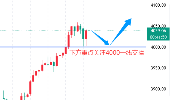 从技术面分析,金价在冲击4060美元附近高点后,于纽约尾盘时段回落至4000美元关键支撑位附近,这完美印证了“看涨不追涨,回踩关键支撑再布局”的交易策略。目前,4000美元整数关口已转化为近期的核心多空分水岭。晚间建议继续维持中长期看涨思路,但需注重入场节奏。具体而言,应以4000一线为重要防守位寻找逢低做多机会,上方初步目标仍关注前高4060美元附近。若价格能有效突破并站稳该阻力之上,则意味着上涨空间将进一步打开,后续有望挑战4100美元乃至更高价位;反之,若多次上攻4060未果,则短线多头需及时获利了结,警惕价格陷入高位震荡或更深度的技术性回调风险。