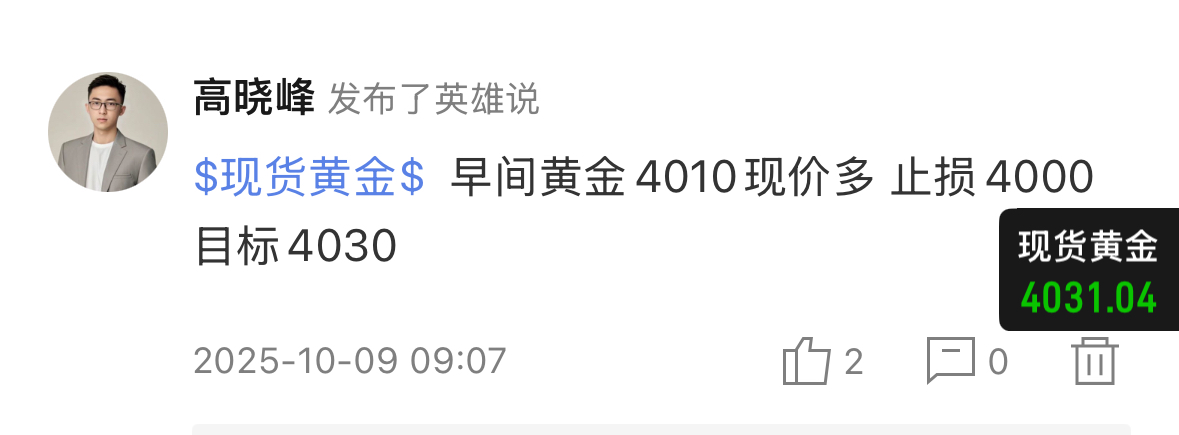 高晓峰:10.9黄金技术分析:坚守4000一线支撑不破择机做多