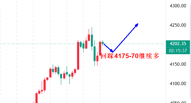 从4小时技术结构看,金价虽经历回调但仍坚守布林带中轨支撑,表明市场整体处于强势阶段。只要价格稳定运行于中轨上方,则维持看涨观点,上行首要目标仍关注4250压力,突破后可进一步上看4290压力带。小周期已在4170附近构筑早盘支撑平台,若意外下破则需重点关注4150多空分水岭的防守情况。日内操作建议以回调做多为主,亚欧盘时段若守稳4170支撑可轻仓试多,若价格回踩至4150关键支撑区域并确认有效,则可考虑分批布局多单。