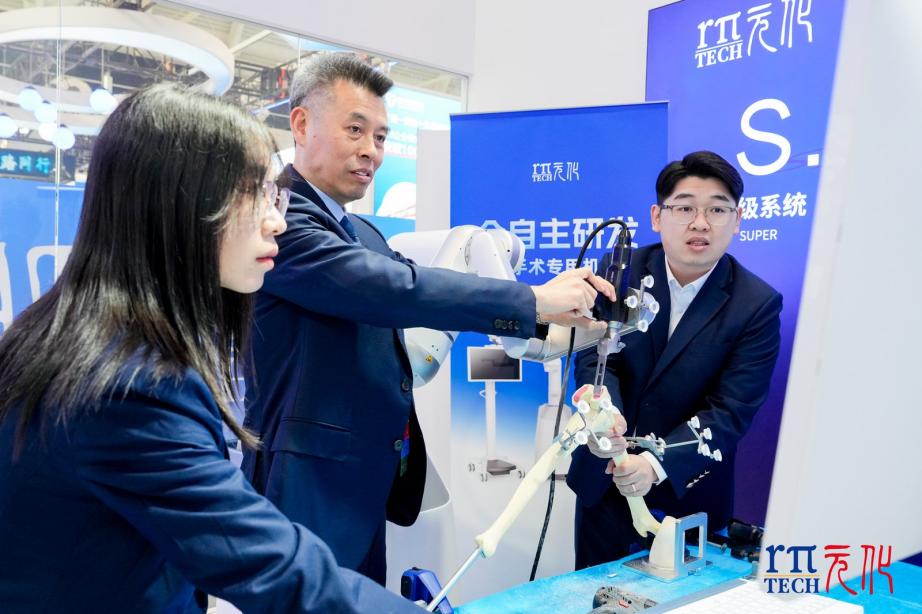 图文:专家体验首个针对骨科手术应用场景完全自主研发的专用机械臂