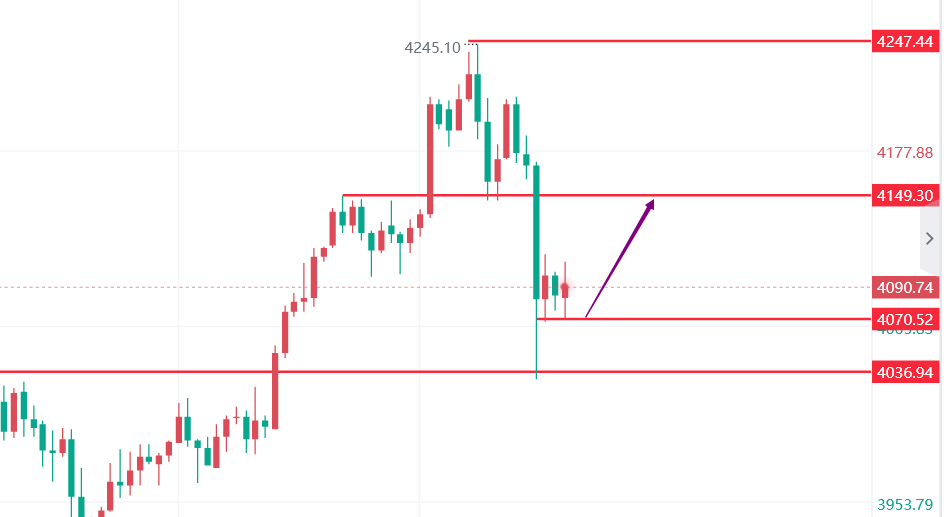 虽然日线连续收阴后难以立即转强,不太可能走出持续上涨空间。但一旦突破,本周仍有望冲击4250甚至4300的前高位置。小周期上方压制位在4250附近,下方支撑在4050附近,由于上周尾盘下跌幅度较大,最低触及4030点,因此建议重点关注4030-4250这个区间。
