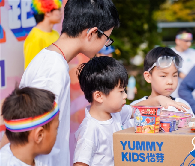 这次活动现场,由怡芽提供的专属赛事包备受家庭青睐,孩子们身着统一服装,在斑斓的色彩中快乐奔跑。怡芽精心设置了互动专区和舞台游戏,健康便携的冲泡意面和即食猪猪肠不仅为参赛家庭提供了及时的能量补充,更成为孩子们赛后争相分享的胜利美味。