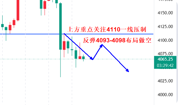 从4小时图结构分析,金价在上周五大幅下挫后,于4030附近暂获支撑并展开反弹,但反弹力度疲弱,在4110附近明显受阻,整体弱势格局并未改变。操作上,周初主思路建议以顺势做空为主,可继续持有空单或择高布局新空单。在技术面转弱且缺乏基本面利好支撑的背景下,应尽量避免逆势抢反弹的操作。具体策略为:上方以4110作为短期强弱分水岭,在此价格之下可延续看空思路,目标下看4040-4030支撑区域;若该支撑区域被下破,则可进一步下看4000点整数关口。只有当价格强势突破并站稳4110阻力上方后,方可考虑回落时的短多机会,上行目标则看向前期缺口上沿4150附近。
