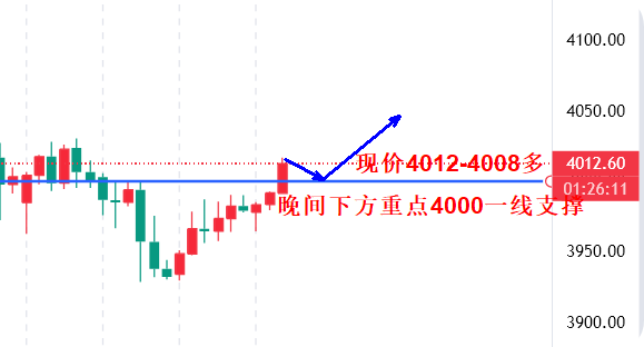晚间黄金建议:现价4012-4008顺势多 止损4000 目标4030