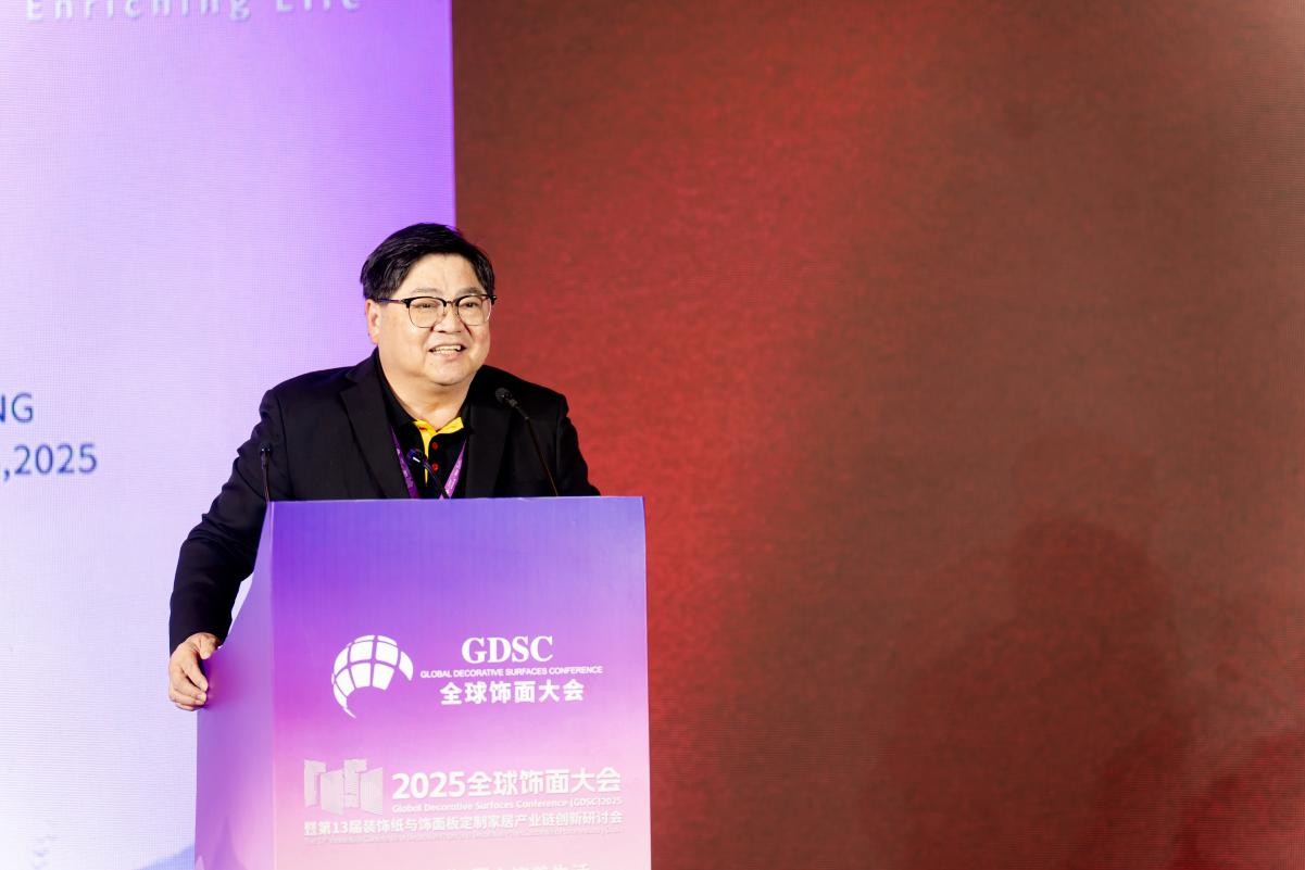 11月11日至13日,2025全球饰面大会暨第13届装饰纸与饰面板定制家居产业链创新研讨会在浙江临安隆重举行。作为全球木业与家居饰面领域规模最大、影响力最广的行业盛会,本届大会以“精工表面之道,匠心饰美生活”为主题,聚焦饰面材料的科技创新、设计美学与产业链协同发展。财纳福诺集团董事会主席曾志文受邀出席并作专题报告,围绕“石晶表面装饰及整装应用创新”展开深度分享,引发行业广泛关注。