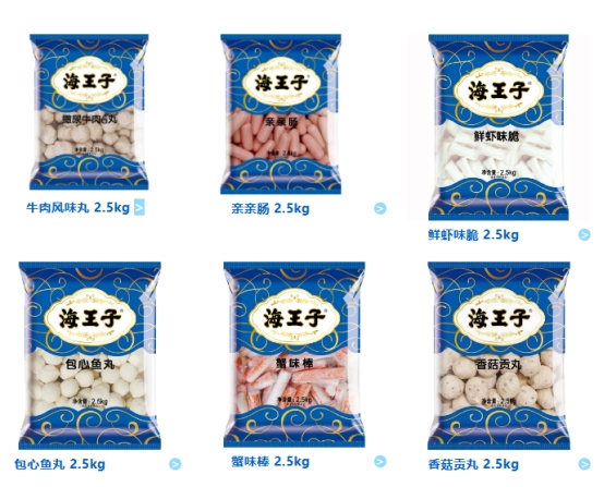海霸王火锅丸子的大包装系列则是连锁火锅、大型麻辣烫店的旺季“定心丸”。海王子系列中,2.5kg规格的撒尿牛肉丸、亲亲肠、包心鱼丸、香菇贡丸,精准覆盖火锅餐桌的经典刚需品类;海霸王主品牌的大包装产品,还包含虾米风味饺、包心鱼豆腐、蟹味排、芊叶豆腐等多元选择,既能满足门店高峰期的集中用货需求,又能通过丰富品类避免食客“吃腻”,进一步巩固复购客群。