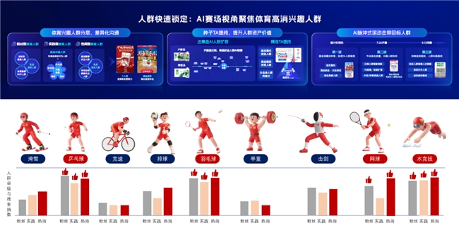 首先,通过挖掘用户跨平台行为关联,识别奥运期间的高潜体育消费人群,聚类为“体育粉丝型”“健康实践型”和“赛事热闹型”三大核心人群,并动态调整运营策略。例如,针对“乒乓赛事粉丝人群”推送“乒乓运动员同款IP产品”等内容。