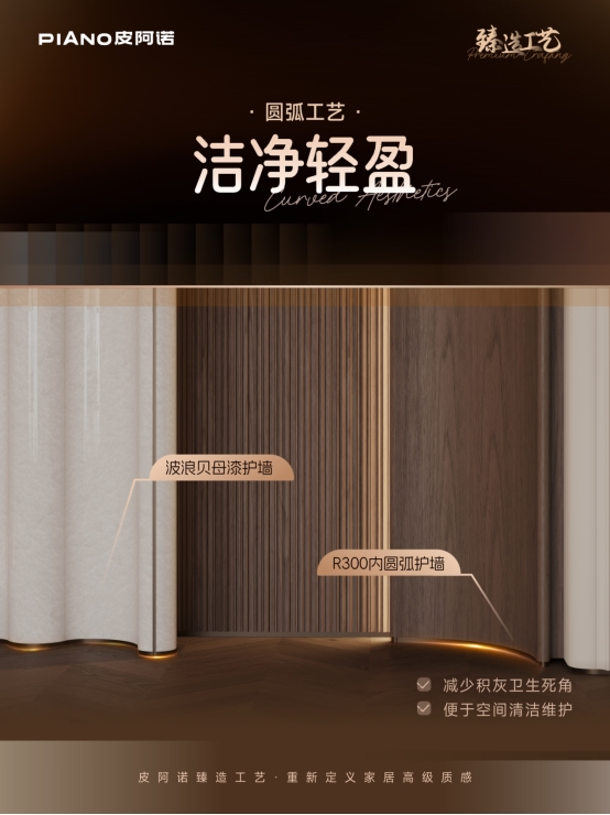 现代家居生活既追求美观,也注重实用便捷,皮阿诺圆弧工艺在清洁维护上同样表现出色。适配现代便捷生活需求,皮阿诺圆弧工艺在清洁维护上尽显优势。通过无死角的圆弧结构设计,有效减少积灰卫生死角,让清洁工作更省心高效。以织境系列的波浪贝母漆护墙、R300 内圆弧护墙为例,凭借无死角的圆弧结构,从根源上减少了积灰卫生死角。日常清洁时,只需用抹布轻轻擦拭即可,无需花费大量时间清理缝隙污垢。无论是厨房旁的过渡区域,还是客厅的墙面装饰,都能保持洁净清爽,为忙碌的都市人群省去清洁烦恼,让家居维护更省心,生活更高效。