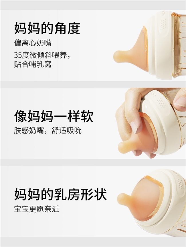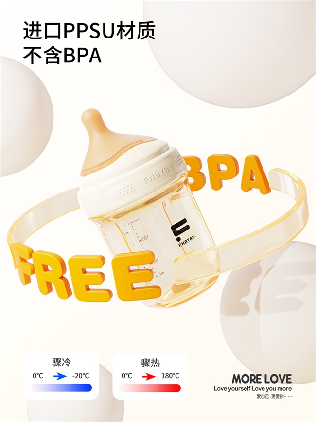 “臻爱如初”系列作为品牌的明星产品,无疑是菲尼贝贝FNBYBY技术实力与设计理念的集中体现。该系列针对不同月龄宝宝的生长发育特点,打造了三款分阶段奶瓶:160ml新生儿防胀气奶瓶专注底部防胀气技术,通过气液分离设计让奶液无气泡,有效减少新生儿容易胀气问题;240ml断奶成长奶瓶采用偏离心Y孔奶嘴,耐啃咬不易撕裂,助力宝宝平稳度过断奶期;320ml大宝宝学饮奶瓶则以V型吸嘴实现防喷防漏防呛,培养宝宝自主饮水能力。三款产品均采用不含BPA的食品级PPSU材质,耐高温180℃,安全耐用且可反复消毒;偏离心奶嘴的微倾斜设计让喂养更省力,平直型内壁无死角则让清洗更便捷,从材质到细节全方位守护宝宝的喂养安全。