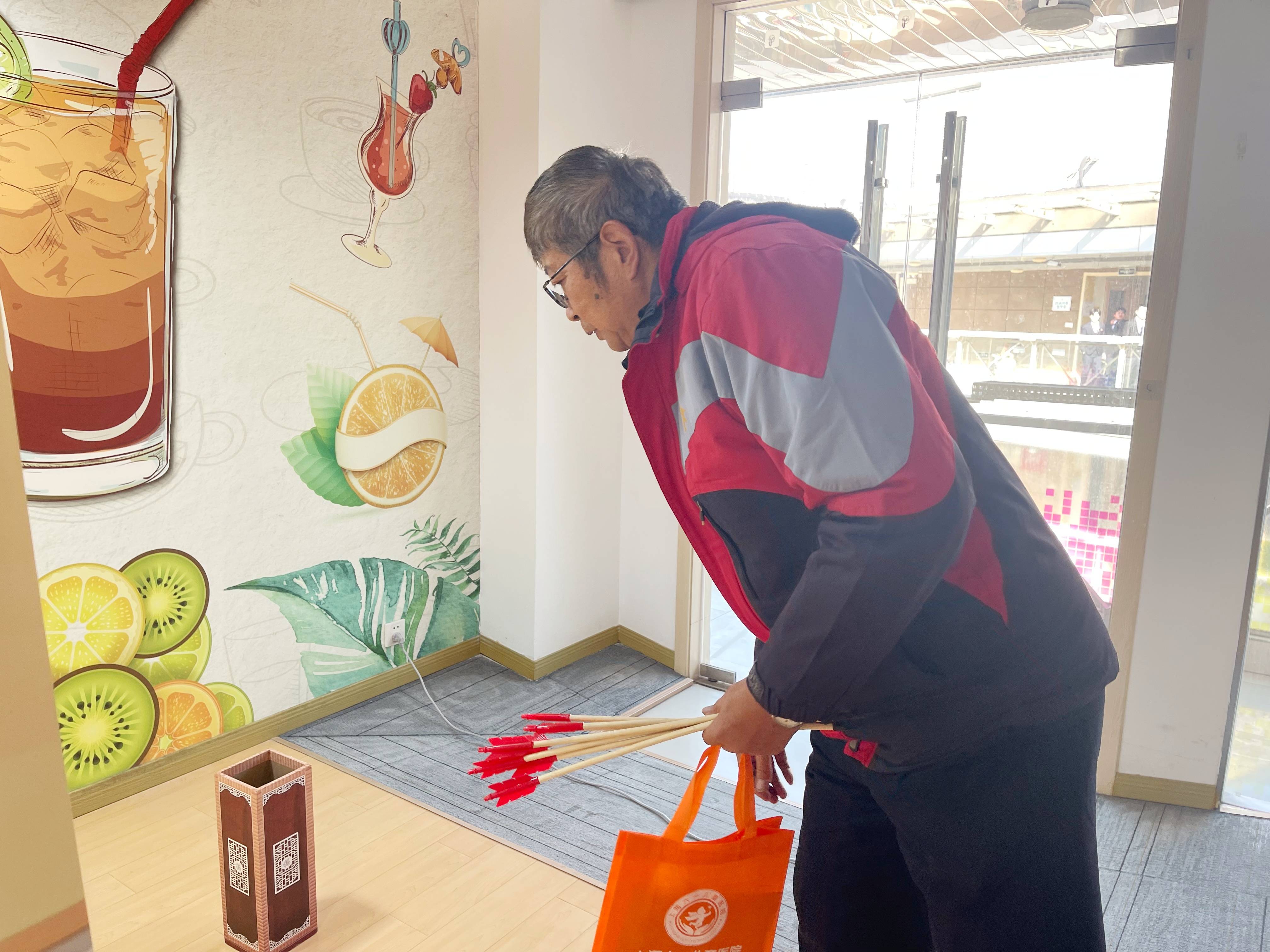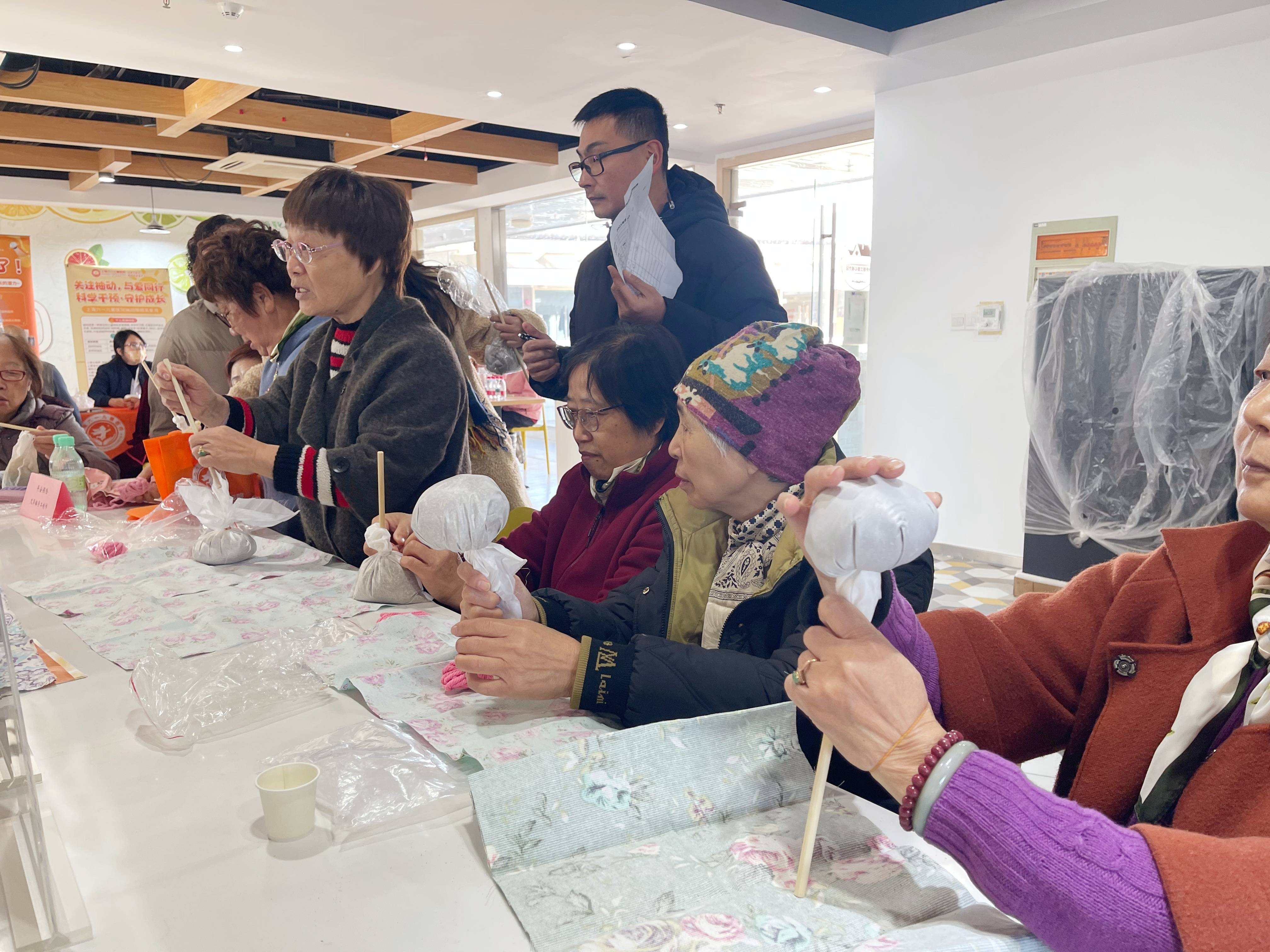 最受居民欢迎的当属“艾草捶手工制作区”。工作人员提前备好艾草、布料等材料,现场示范如何将艾草填充成圆润的药锤,再用彩绳缠绕装饰。居民们围坐在一起,穿针引线、填充草药,互相交流技巧,不一会儿,一个个散发着清香的艾草捶便制作完成。“艾草能驱寒祛湿,这个锤子做完可以自己用,也能送给家人。”张奶奶举着亲手做的艾草捶开心地说。
