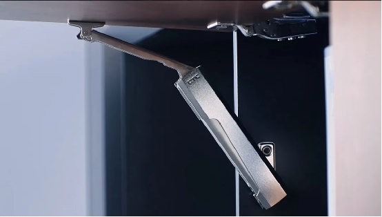 SE系列上翻系统,以其独特的无级悬停功能,优化了传统上翻门在使用中的不便。无需再担心门板突然下落带来的安全隐患,SE系列可实现105°内广泛角度的悬停(极小角度除外)。当门板开启角度过小时,会自动触发缓冲闭合机制。而悬停力度可通过螺丝自由调节,确保不同轻重、尺寸的门板都能实现轻盈顺滑的使用体验。低角度静音缓冲闭合的功能则更进一步提升了使用时的便捷性与舒适度。