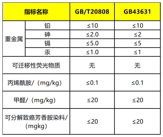 推荐性国标(GB/T20808-2022)是国家推荐企业执行的标准,并非强制要求,但适用范围更广,覆盖日常各类纸面巾、纸餐巾等。其指标体系更全面,既明确了掉粉率≤0.5%、甲醛含量≤20mg/kg 等理化性能要求,也包含可分散性、重金属含量等安全相关检测指标,在安全要求上与强制性国标(GB43631)同样严格,同时兼顾产品使用性能,是更全面的行业品质参考。