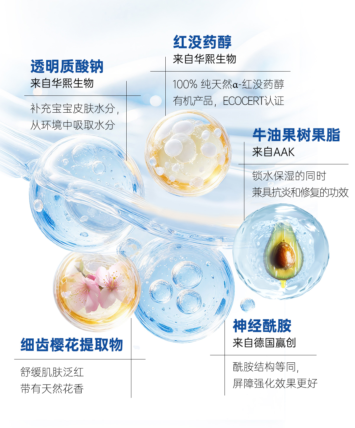 “有位妈妈反馈,香味对于孩子爱不爱用产品很关键,但又担心人工香精刺激宝宝敏感肌,这让我们陷入了思考。”玲玲回忆道,“后来牛牛提出用樱花脂来解决这个问题,樱花脂本身就具有抗炎舒缓的功效,其原材料自带的淡淡清香,既符合宝宝的嗅觉喜好,又不会对肌肤造成刺激,完美平衡了香味与安全。”