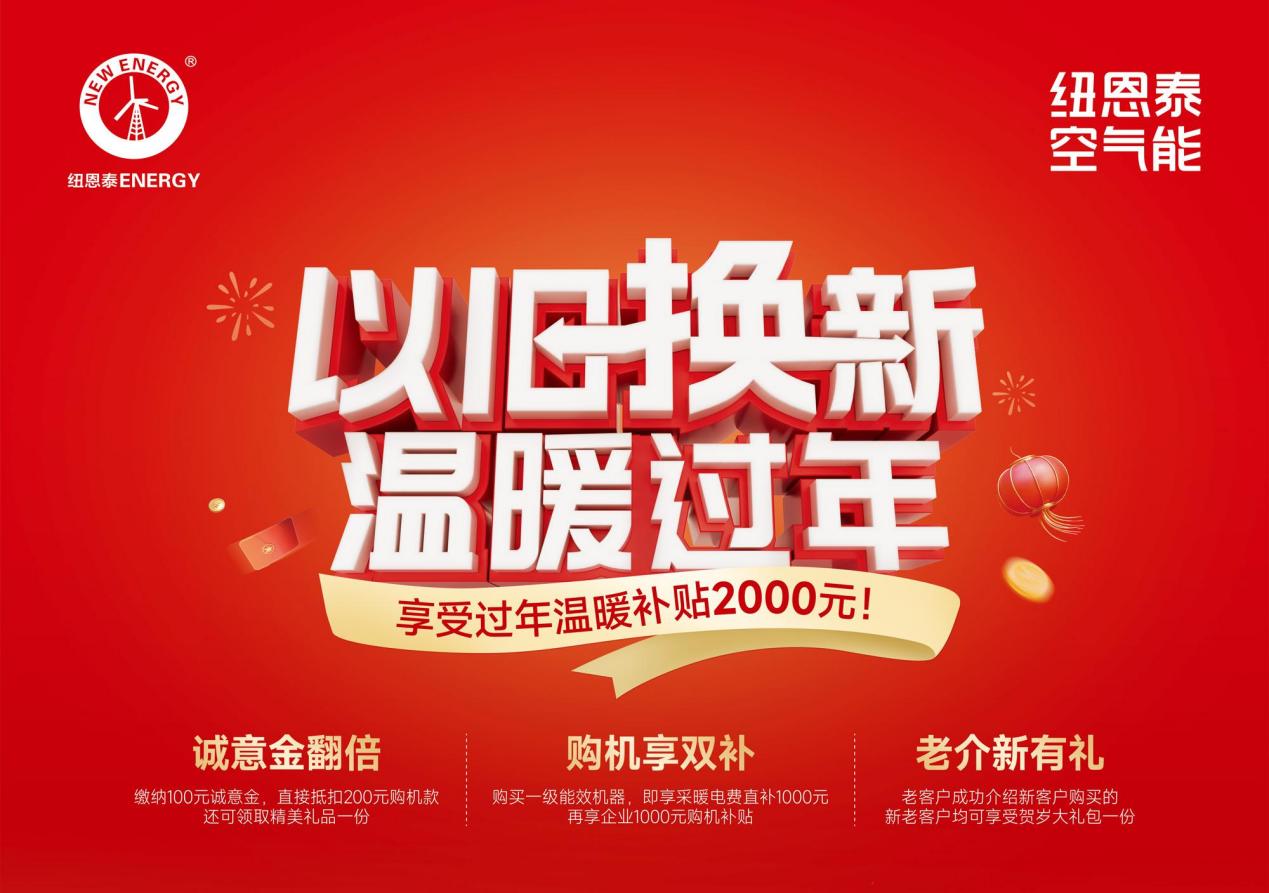 年末正是采暖焕新的好时候,选热泵,实用、靠谱才是硬道理。与其为大品牌买单,不如认准纽恩泰这样的专业老牌子。刚好纽恩泰“以旧换新 温暖过年”活动正在进行中,参与就有优惠,诚意金翻倍抵扣,一级能效机型更能叠加电费和购机补贴,老用户推荐新朋友,双方都能拿贺岁礼包。趁这个机会换台靠谱的热泵,用十年稳定采暖和贴心售后,让家人舒舒服服过个暖年。