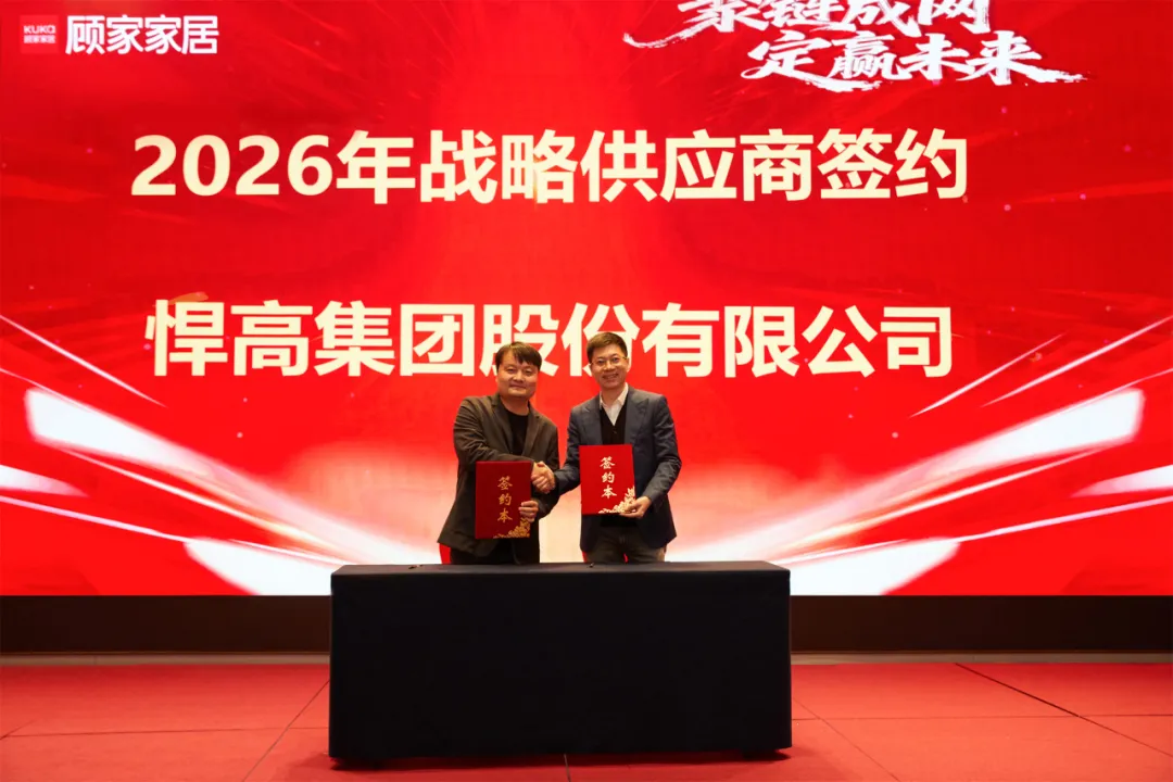 1月4日,悍高集团(全称为悍高集团股份有限公司,董事长为悍高欧锦锋)与顾家家居在顾家年度定制供应商合作伙伴大会上正式签署全品类五金战略合作协议,双方就功能五金与基础五金领域达成深度协同,以2026开年首桩强强联合,为行业发展注入新动能。