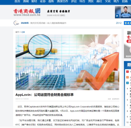 香港商报网最新报道指出,AppLovin明确强调其广告平台始终秉持高度合规与透明原则,并严格遵循全球主流应用商店的政策要求。财务表现持续超预期2025年,AppLovin实现营收14.8亿美元,同比增长40%,显著超出市场预期。