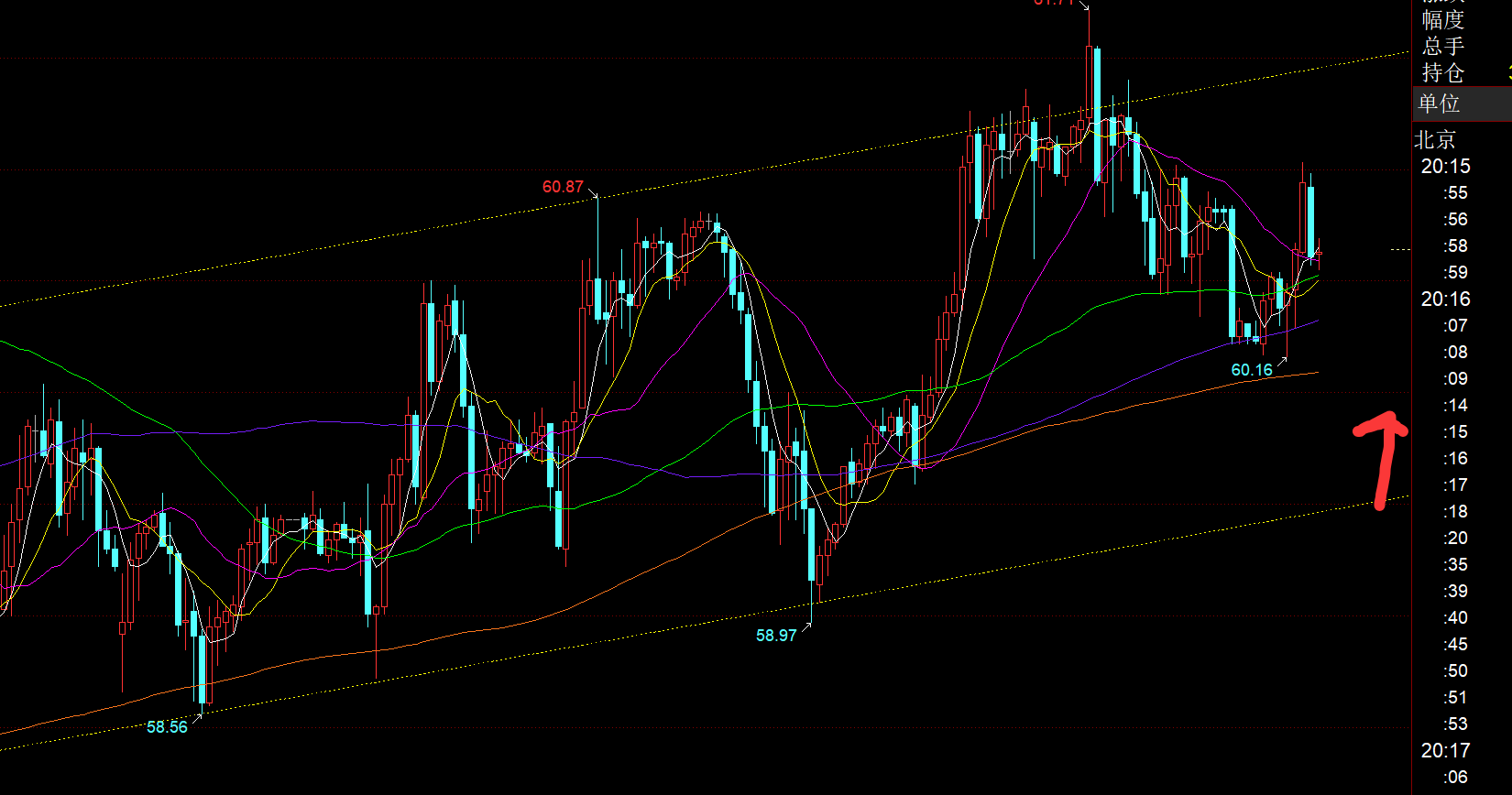 原油方面:短期通道未发生改变,昨晚上轨一直承压,那么今天继续留意下轨59.5上支撑看涨反弹,阻力61.5;