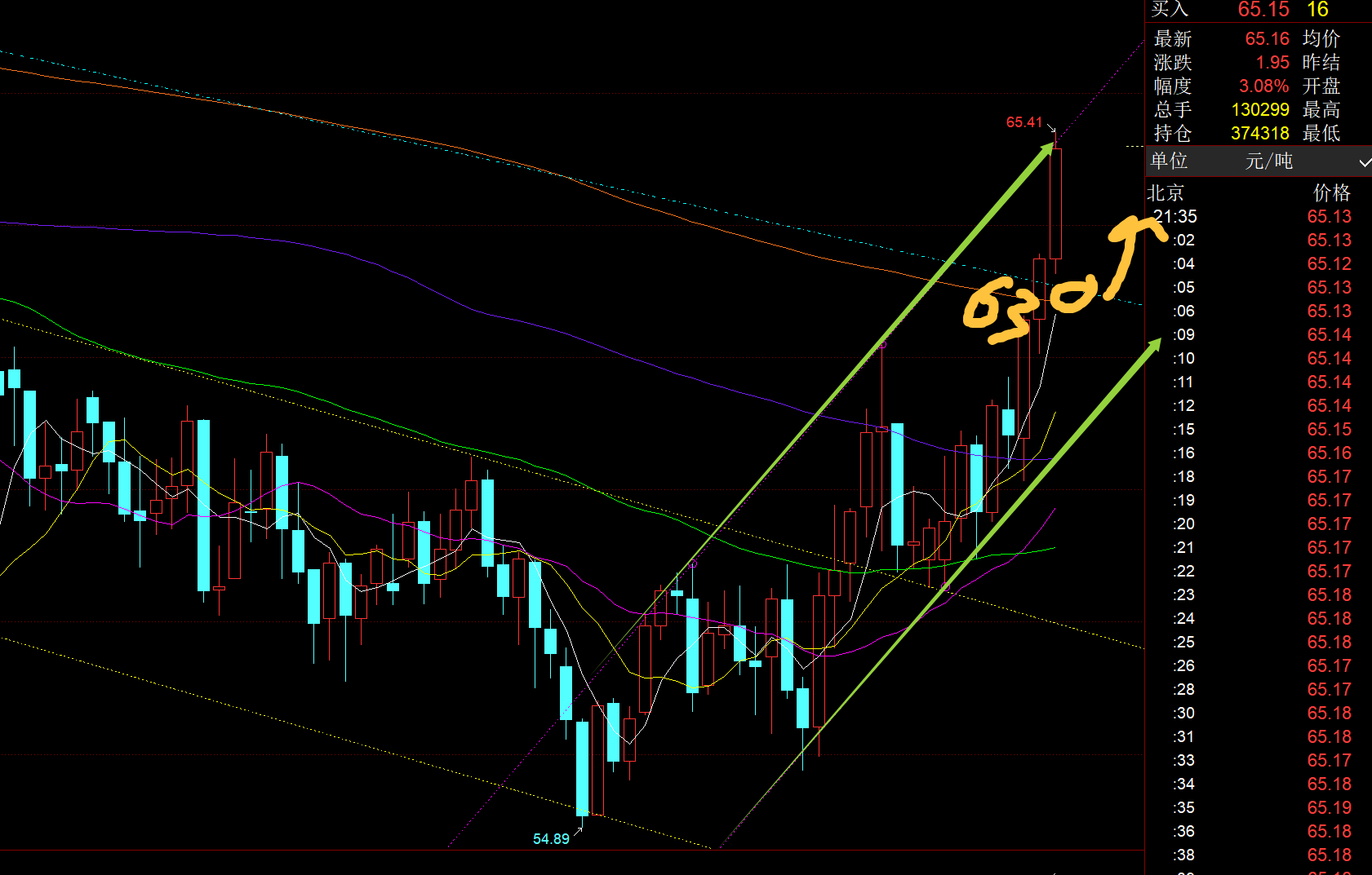 原油方面: 未来的一批黑马也开始慢慢启动了,日线走的有些强势了,年均线63突破站上,短趋势已即将发生扭转,不再是看反弹,而逐步有望看反转; 今晚63之上维持看涨,阻力65.5,看后面几天能否回踩给上车的机会;